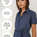 Material: 70% Viscosa, 30% Lino - Una tela delgada sin elasticidad, muy fresca, liviana y agradable al tacto. Ideal para prendas de verano clásicas de estilo sastreras.