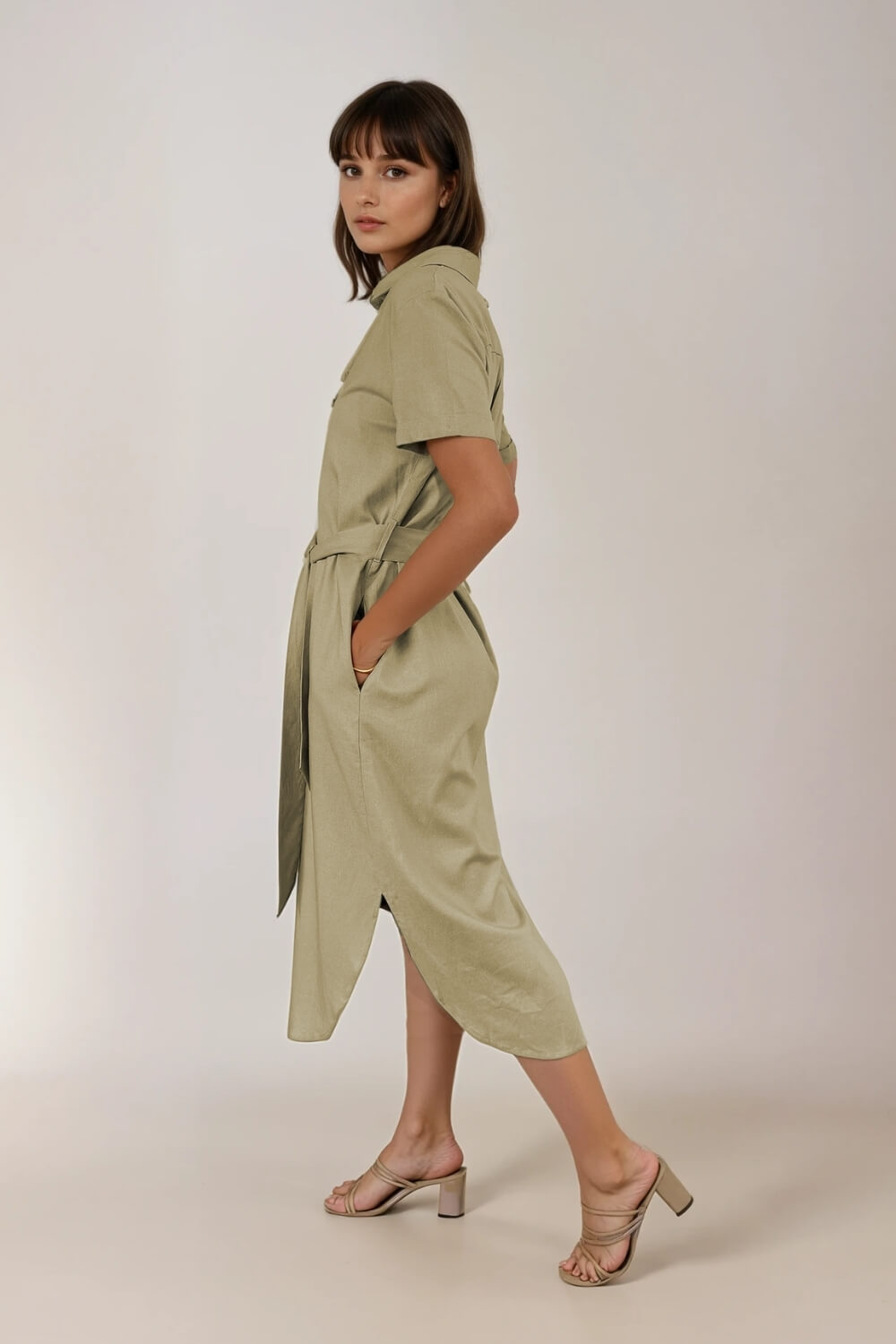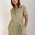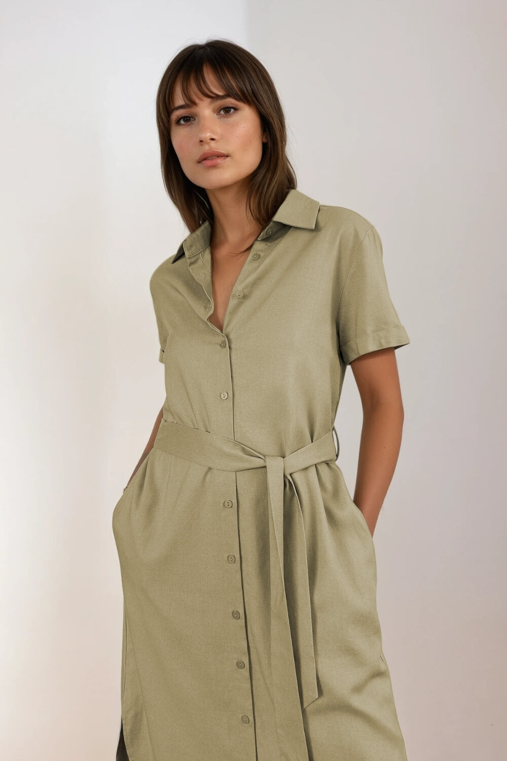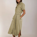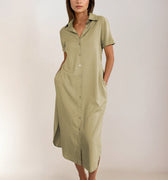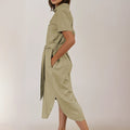 Vestido Camisero Lino Verde Seco