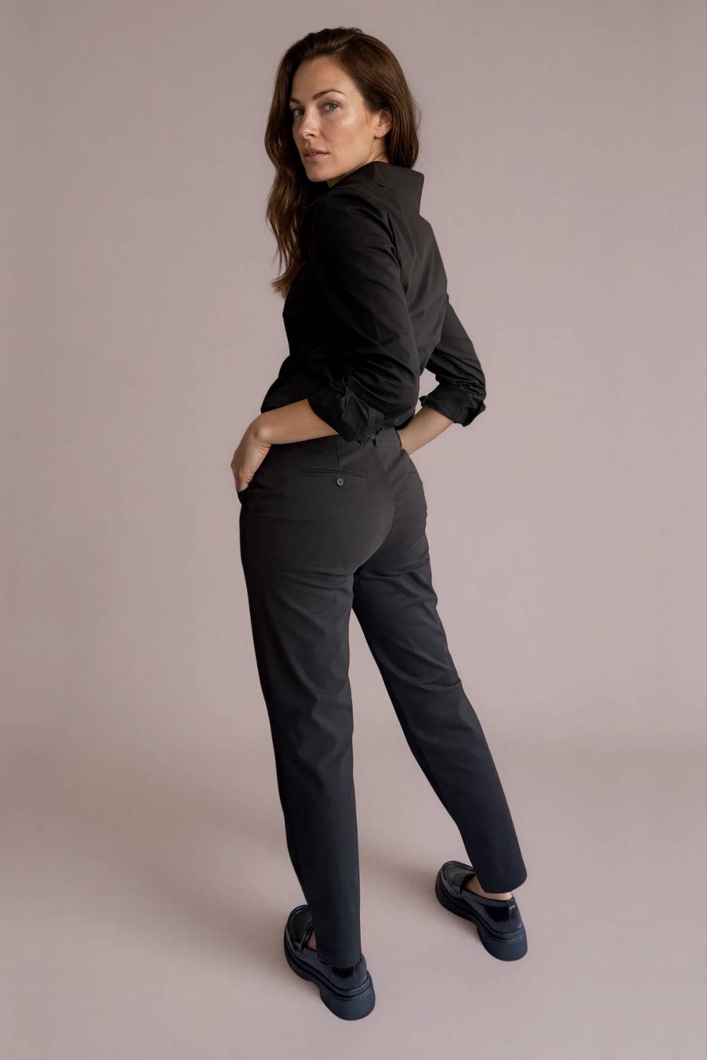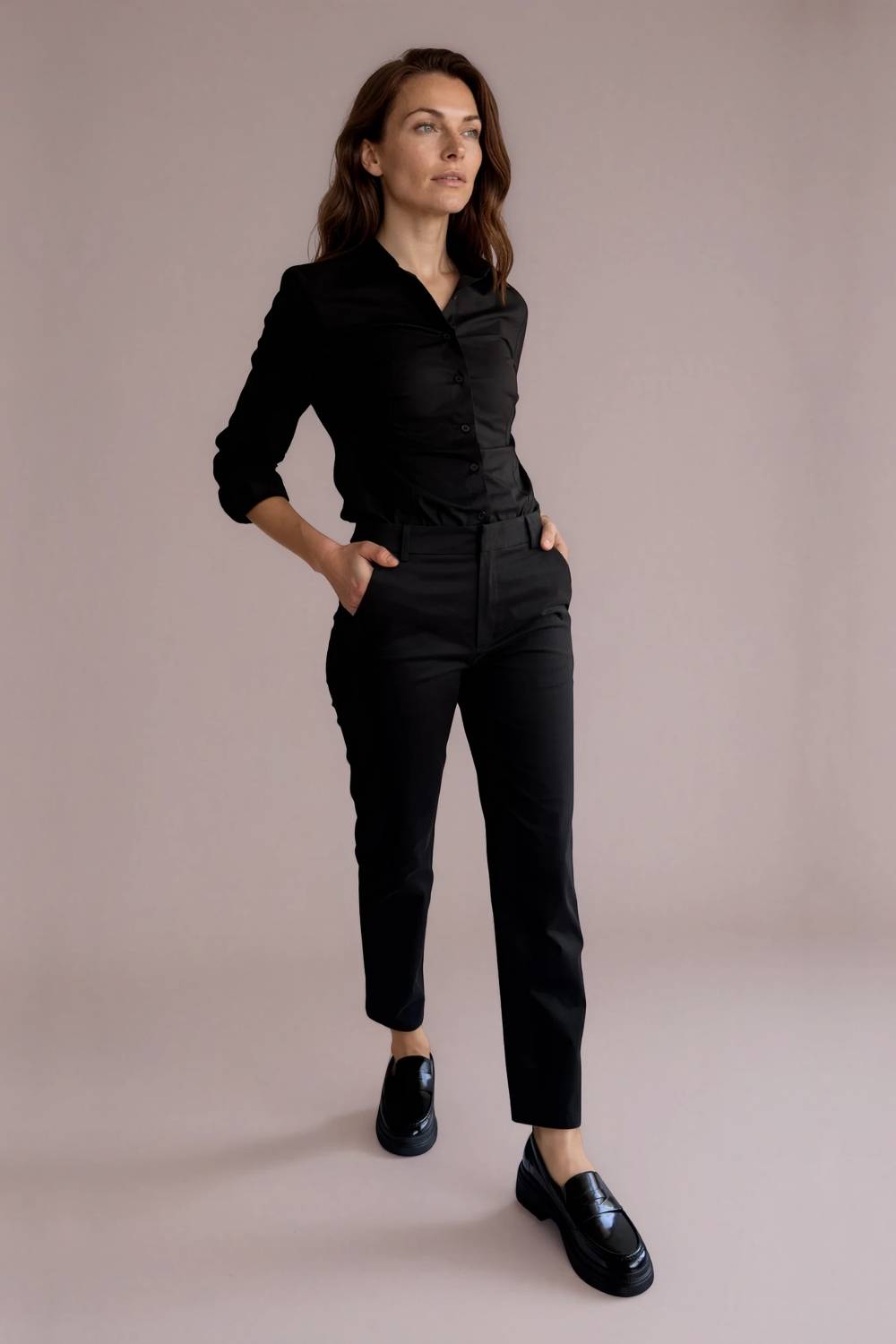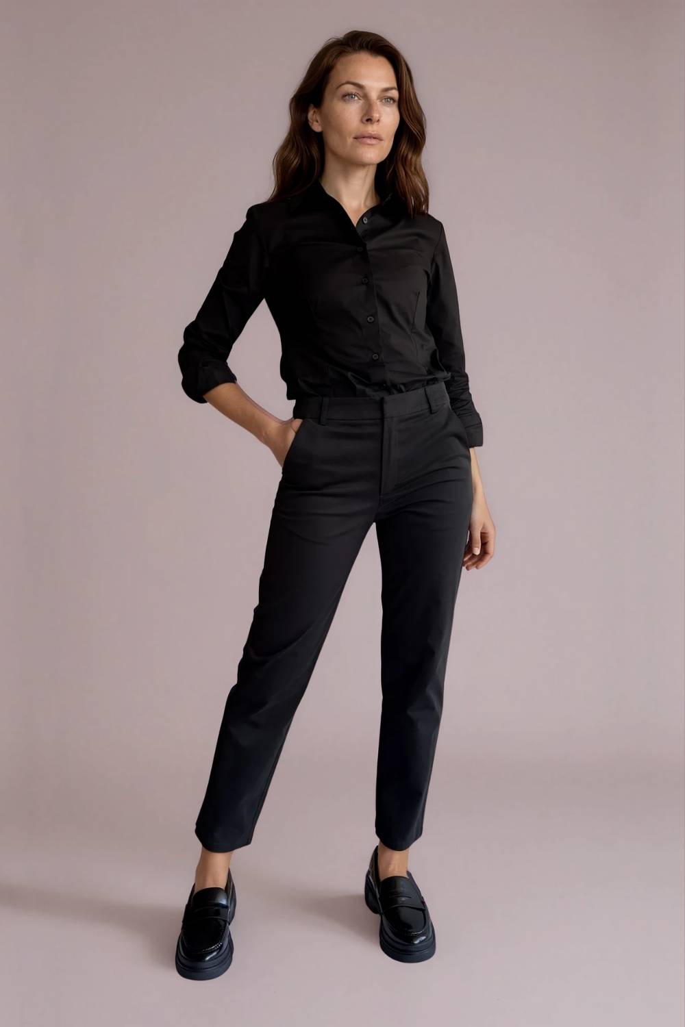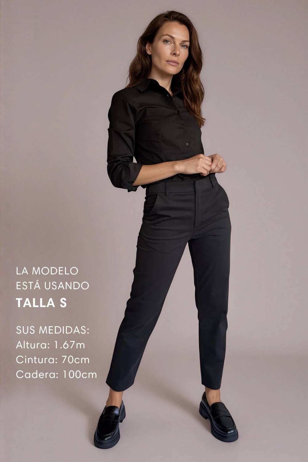 El nuevo Pantalón Simone es un básico infaltable que mezcla estilo, comodidad y versatilidad en una sola prenda. Confeccionado en algodón elasticado, ofrece un calce cómodo y flexible que se adapta al cuerpo sin perder su forma. Su tela es suave, resistente y perfecta para acompañarte en el día a día. El tiro medio estiliza la figura y entrega mayor comodidad, mientras que su corte recto alarga visualmente las piernas y lo convierte en una opción muy favorecedora. Cuenta con bolsillos traseros con botón, un detalle funcional que además aporta un acabado más pulido y ordenado.