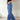 Pantalón denim azul gastado, corte oxford tiro medio con ruedo ancho con detalles de roturas. Un pantalón elasticado clásico, cómodo y súper sentador. Una prenda básica pero con un toque casual, esencial para cualquier fondo de armario.