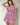 Vestido corto escote V y falda extra amplia, mangas cortas holgadas y con cintura alta elasticada. Cuenta con detalles de pliegues costurados en busto y encaje tejido en escote. Diseñado con estampa estilo boho-folk full floral en tonos violetas y rosados, con guardas en ruedo y mangas. Un vestido colorido, fresco y liviano, con mucho movimiento. Cómodo y súper sentador, es la prenda ideal para sumar color a tu armario.
