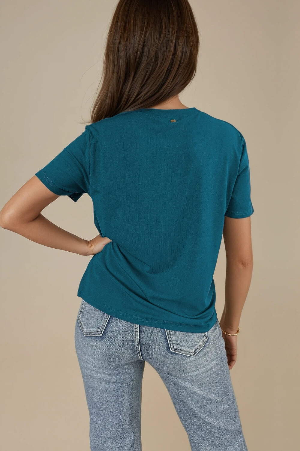 La infaltable de todo clóset: nuestra polera básica de modal es la prenda perfecta para el día a día gracias a su calce clásico y levemente holgado, que entrega comodidad sin perder estilo. Su tela de modal, suave y ligera, aporta frescura y una caída fluida que se adapta a tu silueta con naturalidad. De manga corta y cuello redondo, es una pieza versátil que puedes usar sola para un look relajado, o como base para armar múltiples outfits combinándola con jeans, faldas o chaquetas. Disponible en cinco colores esenciales —negro, crudo, verde, azul y mocca— para que elijas tu favorito o armes un set de básicos que te acompañen en cualquier ocasión. Una prenda cómoda, funcional y fácil de combinar, ideal para tu clóset cápsula.