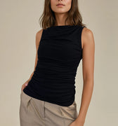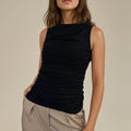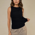 Un básico con un toque sofisticado que marca la diferencia. Este top sin mangas está confeccionado en modal suave y elástico, lo que asegura un calce cómodo y favorecedor. Su detalle drapeado en la parte frontal le da un aire elegante y femenino, perfecto para elevar tus looks del día a día o para ocasiones más especiales. El diseño ajustado realza la silueta, mientras que el efecto drapeado aporta movimiento y un acabado moderno que nunca pasa desapercibido. Es una prenda versátil que combina fácilmente con jeans, pantalones o faldas, adaptándose a distintos estilos y momentos. Un must-have para tu clóset en cualquiera de sus colores disponibles, ideal para quienes buscan una prenda simple pero con carácter, que se transforme en la protagonista de cualquier outfit.
