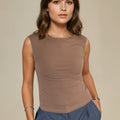 Un básico con un giro elegante. Este top confeccionado en modal extra suave se ajusta delicadamente al cuerpo, realzando la silueta con comodidad y estilo. Su diseño sin mangas y con cuello bote entrega un aire sofisticado y moderno, ideal para quienes buscan una prenda versátil que se adapte tanto a looks casuales como a outfits más arreglados. La caída fluida del modal aporta frescura y suavidad al tacto, convirtiéndolo en un imprescindible para el día a día. Puedes combinarlo con jeans, faldas o pantalones sastreros, logrando looks para toda ocasión. Disponible en cuatro tonos infaltables de la temporada: negro, verde, azul y mocca. Una prenda simple pero llena de estilo, perfecta para elevar tu clóset con un toque atemporal y femenino.