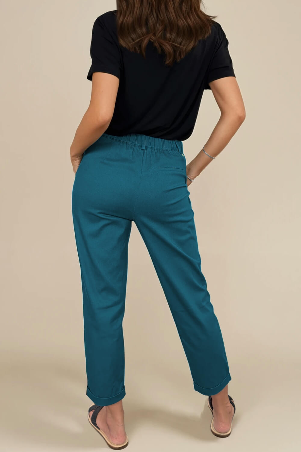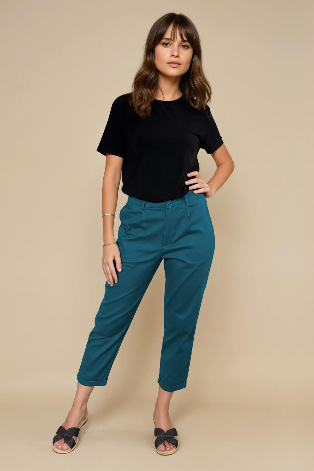Material: Gabardina - 97% Algodón - 3% Spandex. Una tela de fibras naturales, de elasticidad leve y grosor medio, ideal para pantalones para todo el año.