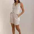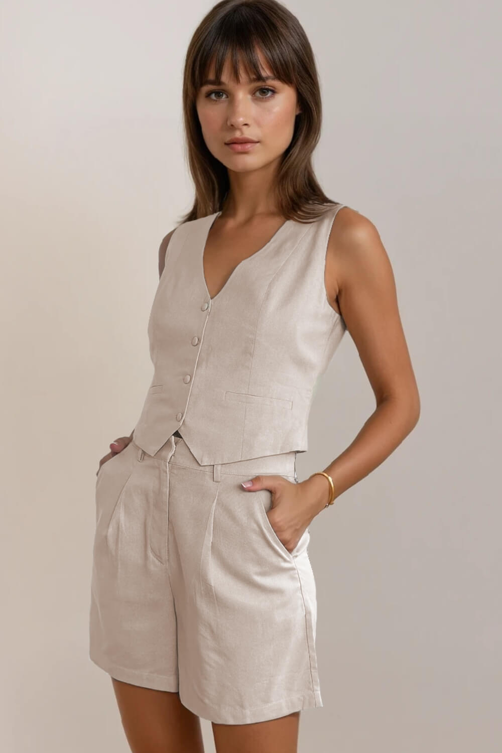 Cómodo, elegante y fácil de combinar: este short bermuda es un básico que vas a querer usar todo el verano. Confeccionado en una mezcla suave de lino y viscosa, tiene una textura liviana y fresca que se adapta perfecto a los días de calor. Su calce relajado con pinzas delanteras estiliza la figura sin perder comodidad, mientras que el dobladillo ancho y los bolsillos laterales le dan un toque moderno y funcional. Disponible en crudo, para un look natural y luminoso, y en negro, un clásico infaltable que combina con todo. Ideal para usar con blusas livianas o con nuestros tops Jazz Gillette en conjunto para un outfit full sastrero. Un short versátil, femenino y con ese aire casual chic que nunca falla.