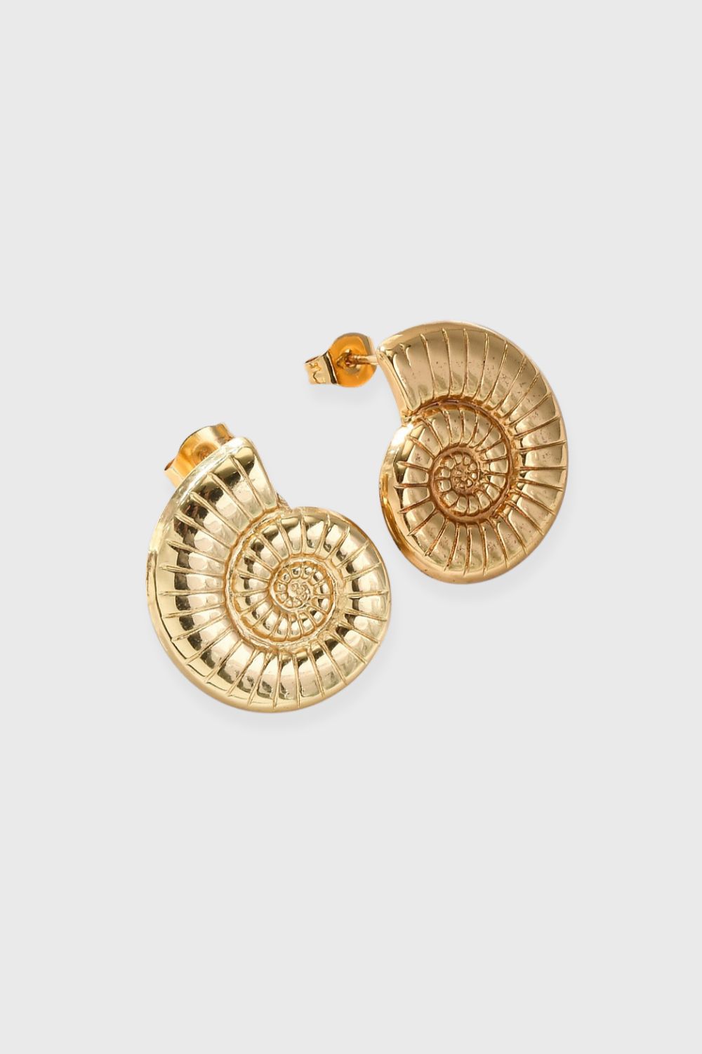 Estos aros en forma de caracola son el complemento perfecto para darle un toque luminoso y sofisticado a tu look. Están confeccionados en acero inoxidable enchapado en oro 18K con tecnología PVD, por lo que son resistentes al agua y al uso diario, manteniendo su brillo por más tiempo. Su diseño texturizado y voluminoso aporta un aire elegante y moderno, ideal para elevar cualquier outfit, desde algo casual hasta uno más arreglado. Livianos, cómodos y súper combinables, son ese detalle dorado que transforma tu estilo en segundos.