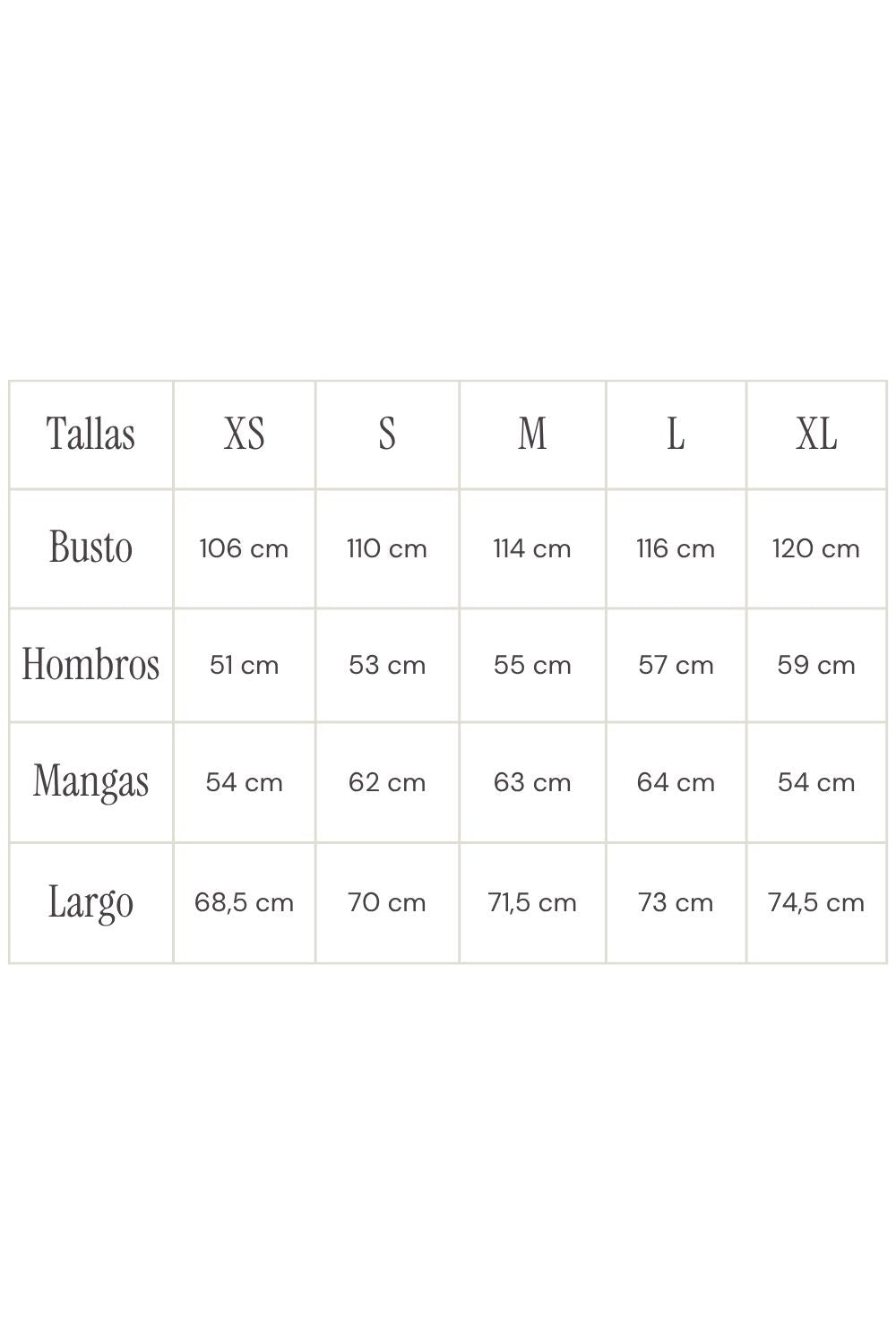 ✨ Consejo para elegir tu talla: Esta camisa es de calce clásico/holgado. Te aconsejamos que te guíes por la medida de busto que es la parte más "entallada" de la prenda.