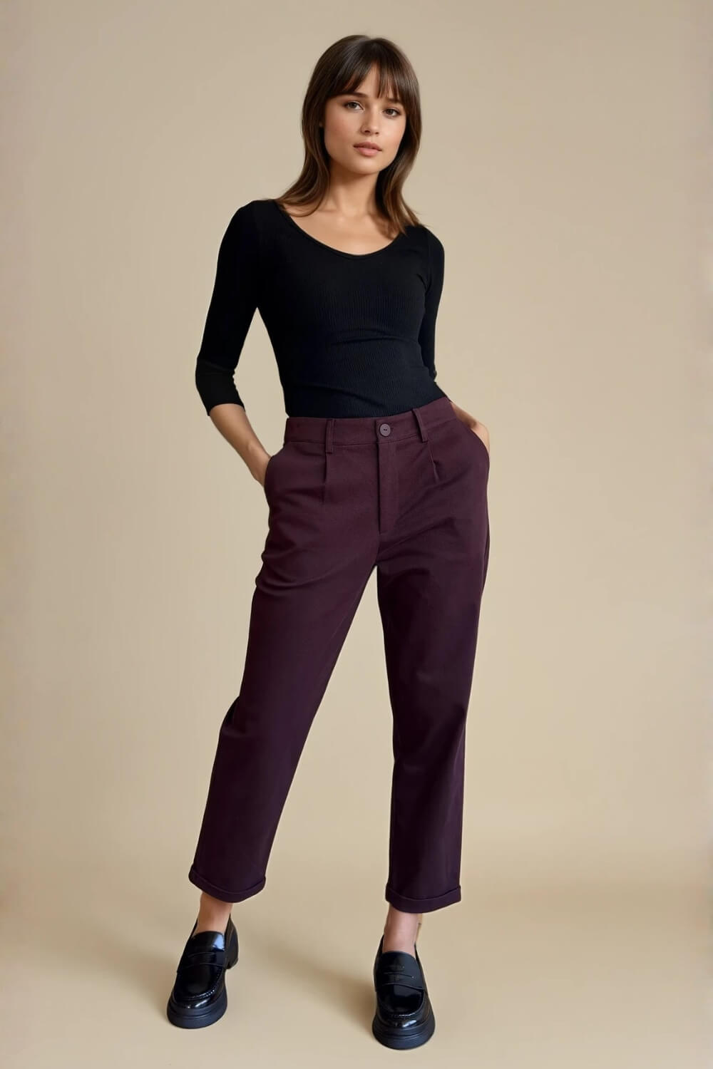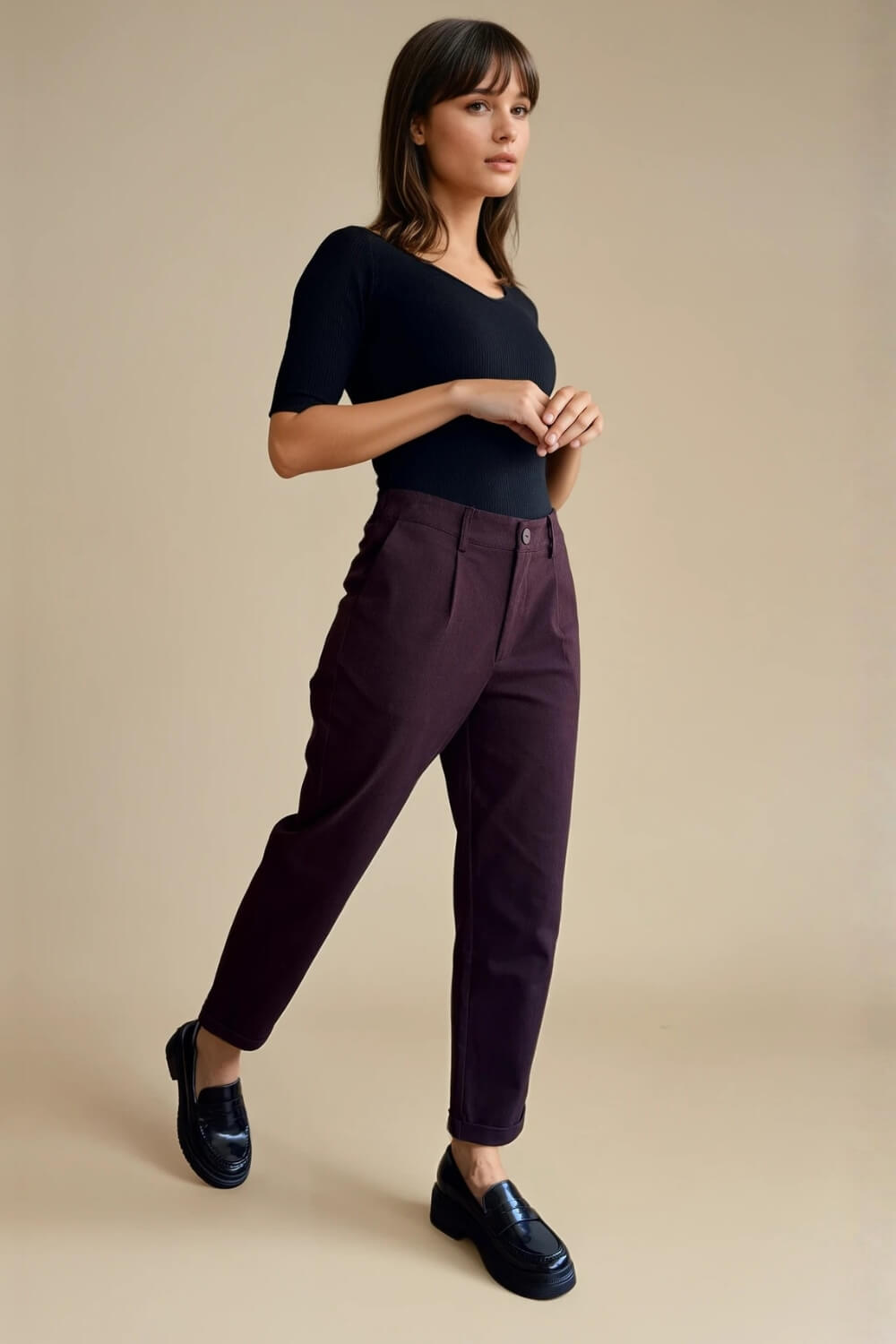 Un básico infaltable en tu clóset de oficina y para looks elegantes del día a día. Este pantalón de gabardina sastrera de corte Mom, se adapta perfecto a la figura sin apretar, ideal para estilizar la silueta y dar un toque sofisticado sin perder comodidad. Su tiro alto favorece la cintura y lo convierte en una opción muy versátil, perfecta para combinar con blusas, camisas o poleras más casuales. Cuenta con pinzas delanteras que le aportan estructura, cierre frontal oculto, bolsillos laterales funcionales y presillas para cinturón. Disponible en carios colores súper fáciles de combinar, es esa prenda que te salva cualquier look cuando quieres verte sofisticada sin esfuerzo, ya sea en el trabajo, reuniones o salidas más formales.