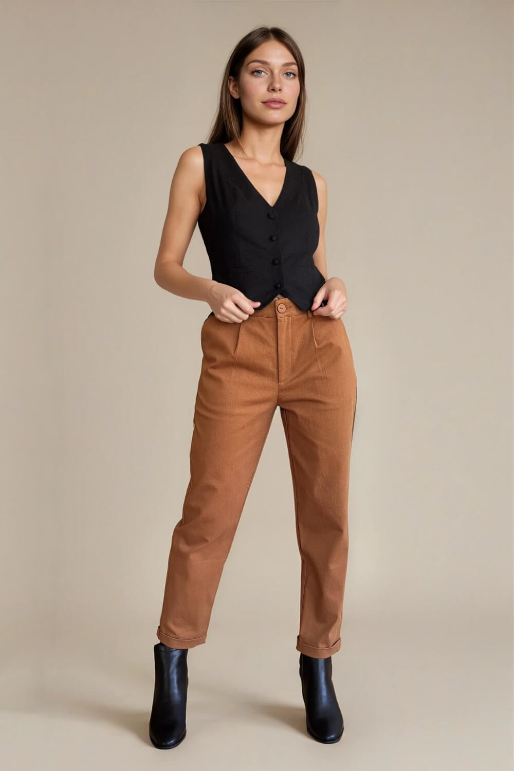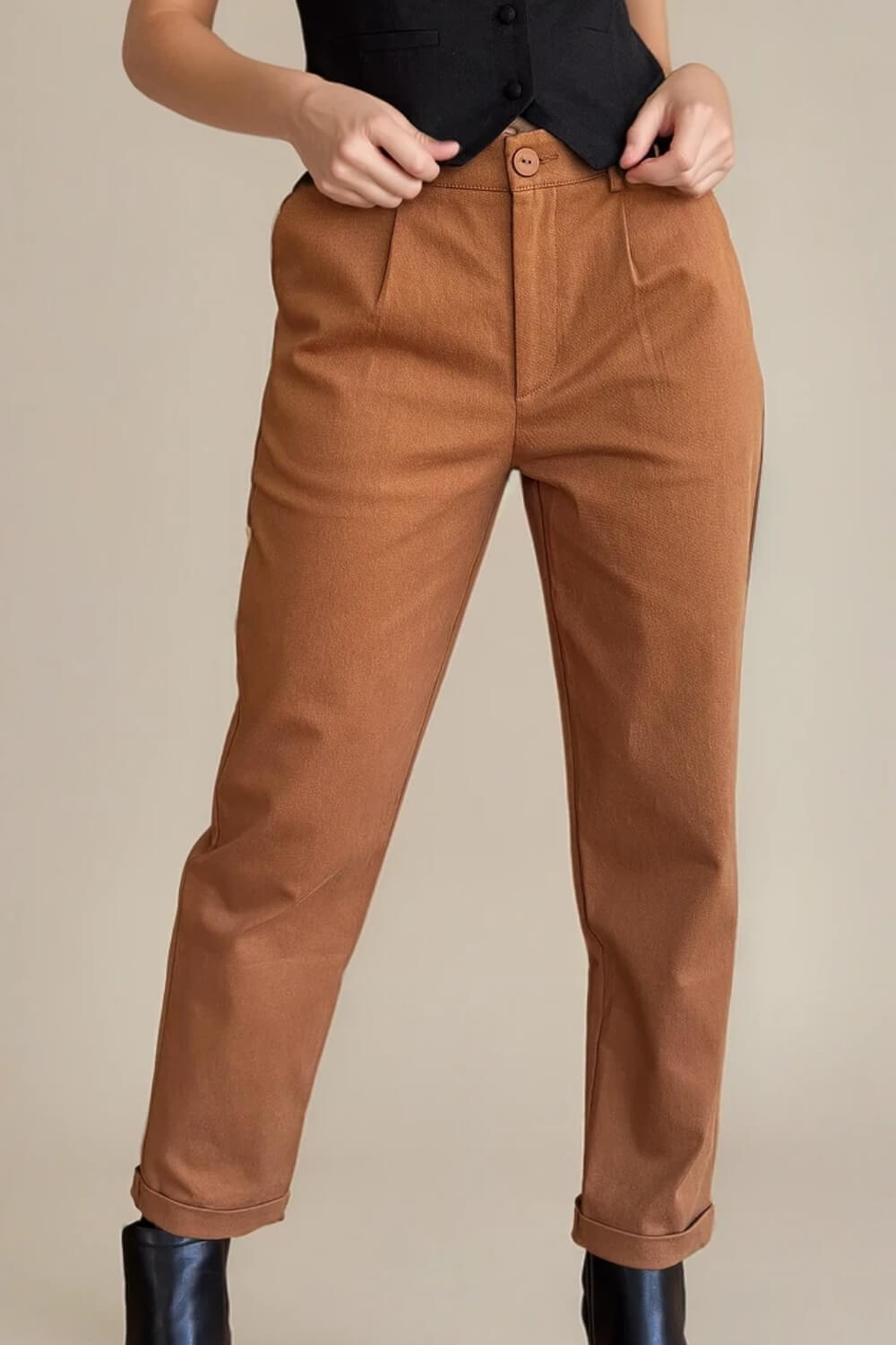 Un básico infaltable en tu clóset de oficina y para looks elegantes del día a día. Este pantalón de gabardina sastrera de corte Mom, se adapta perfecto a la figura sin apretar, ideal para estilizar la silueta y dar un toque sofisticado sin perder comodidad. Su tiro alto favorece la cintura y lo convierte en una opción muy versátil, perfecta para combinar con blusas, camisas o poleras más casuales. Cuenta con pinzas delanteras que le aportan estructura, cierre frontal oculto, bolsillos laterales funcionales y presillas para cinturón. Disponible en carios colores súper fáciles de combinar, es esa prenda que te salva cualquier look cuando quieres verte sofisticada sin esfuerzo, ya sea en el trabajo, reuniones o salidas más formales.