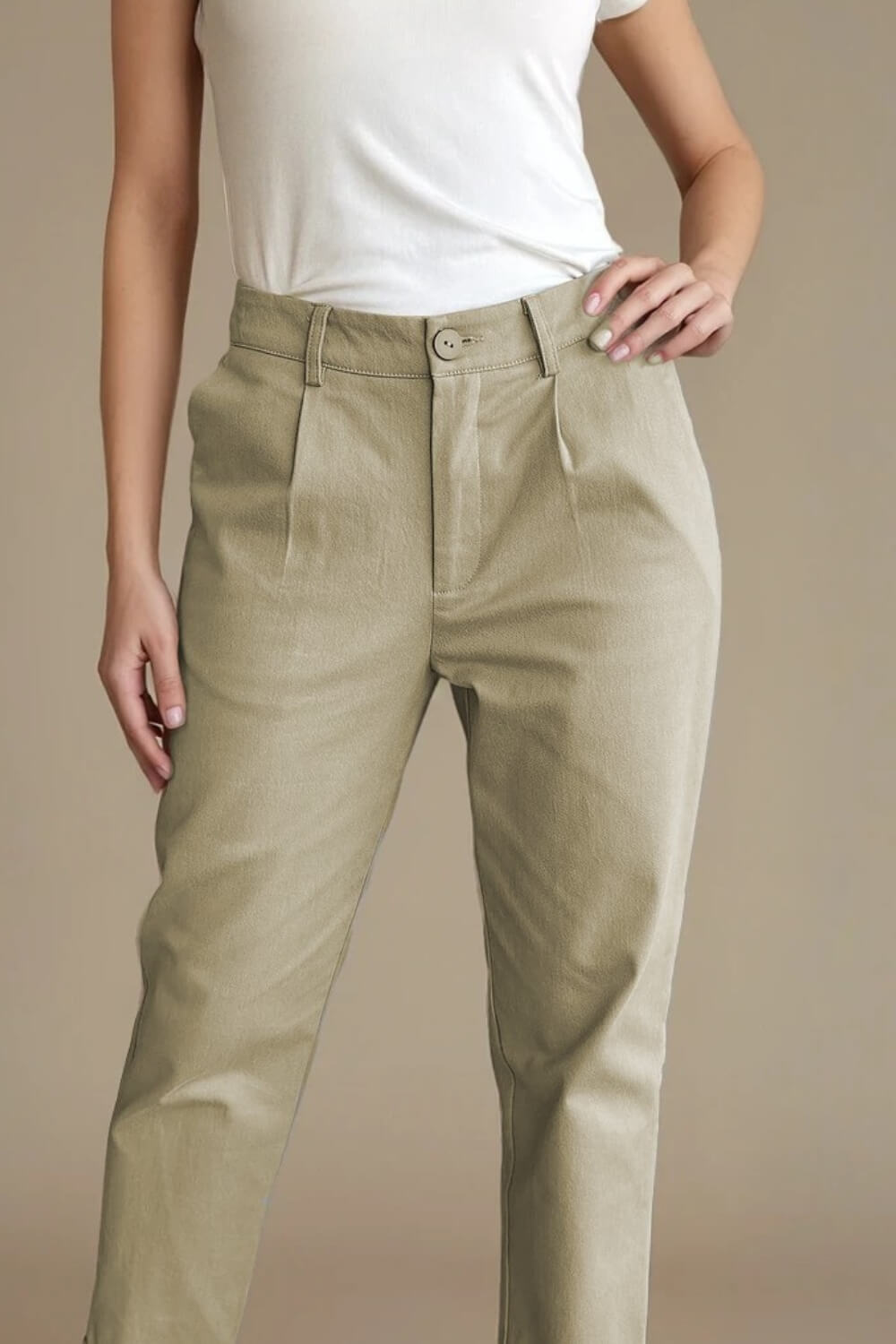 Pantalón Piano Algodón Largo Verde Grisáceo