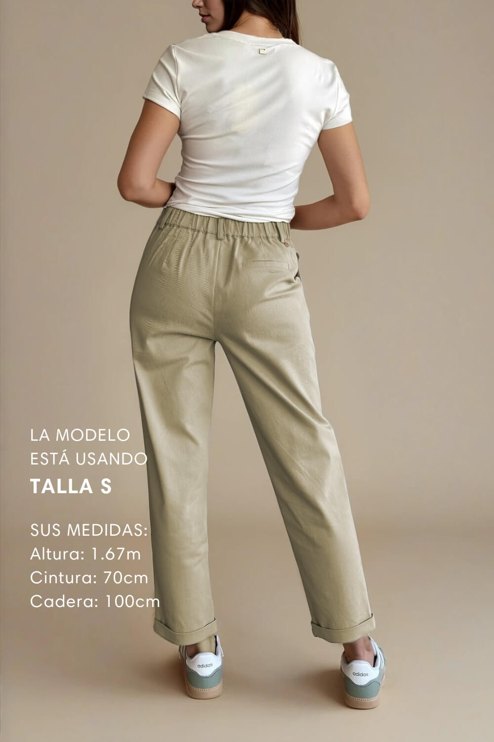 - El tallaje de este pantalón es más amplio de lo normal. Te recomendamos guiarte por las medidas en centímetros, seguramente seas una talla menos de lo que usas normalmente en otras marcas.