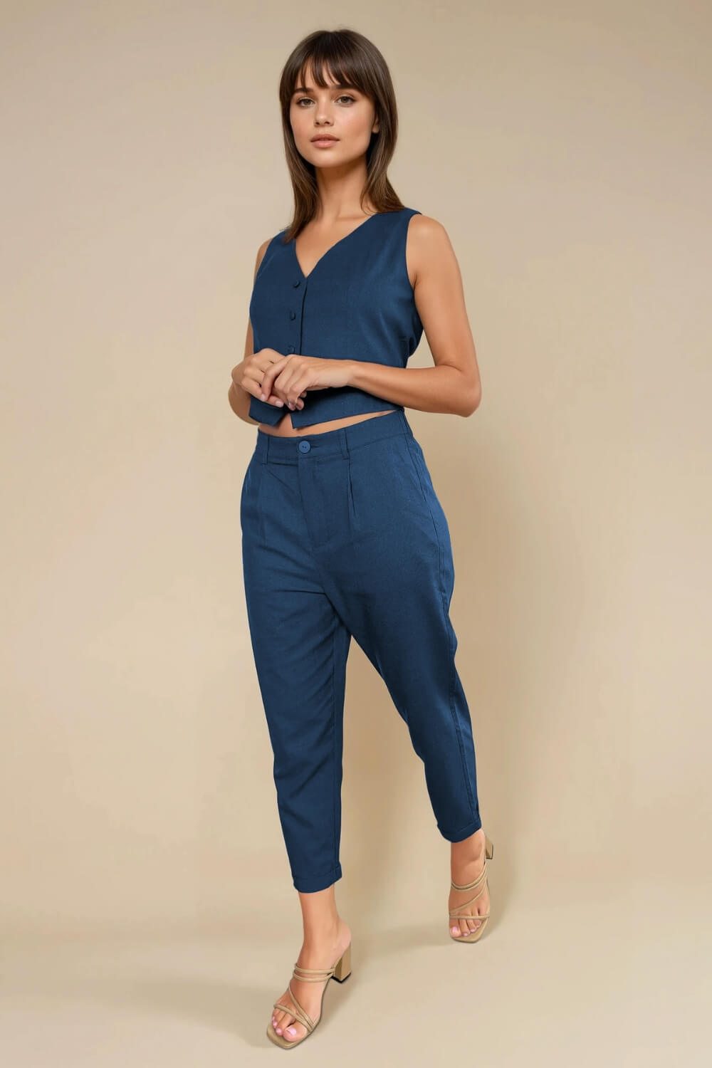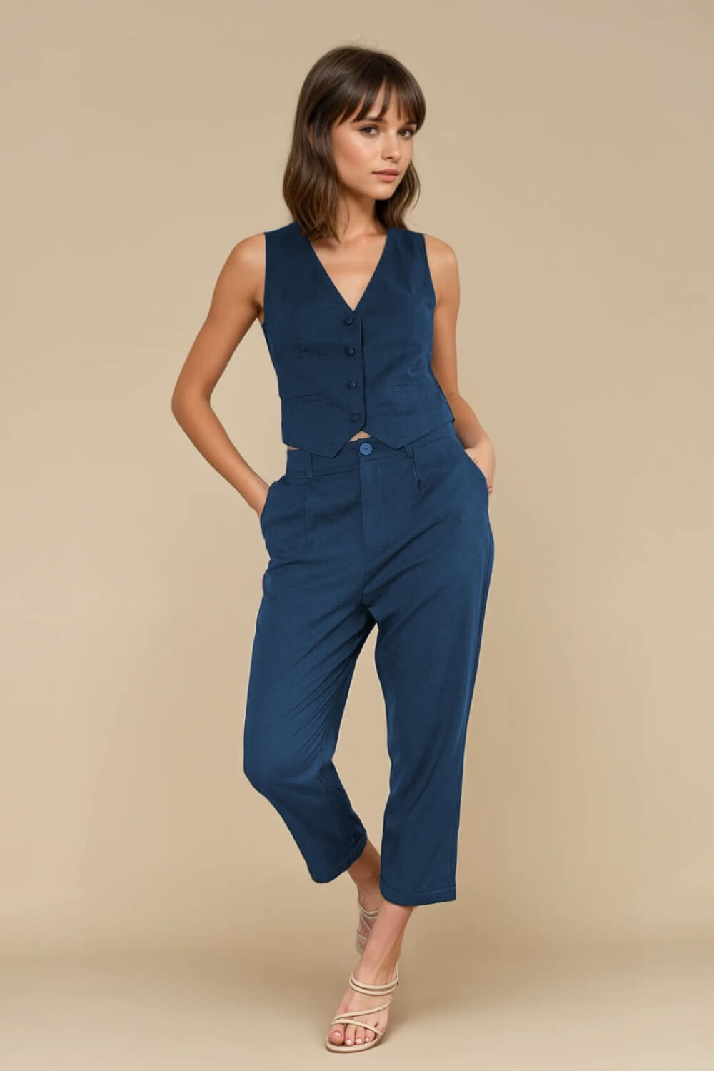 Material: 55% Viscosa, 45% Lino - Una tela delgada sin elasticidad, muy fresca, liviana y agradable al tacto. Ideal para prendas de verano clásicas de estilo sastreras.