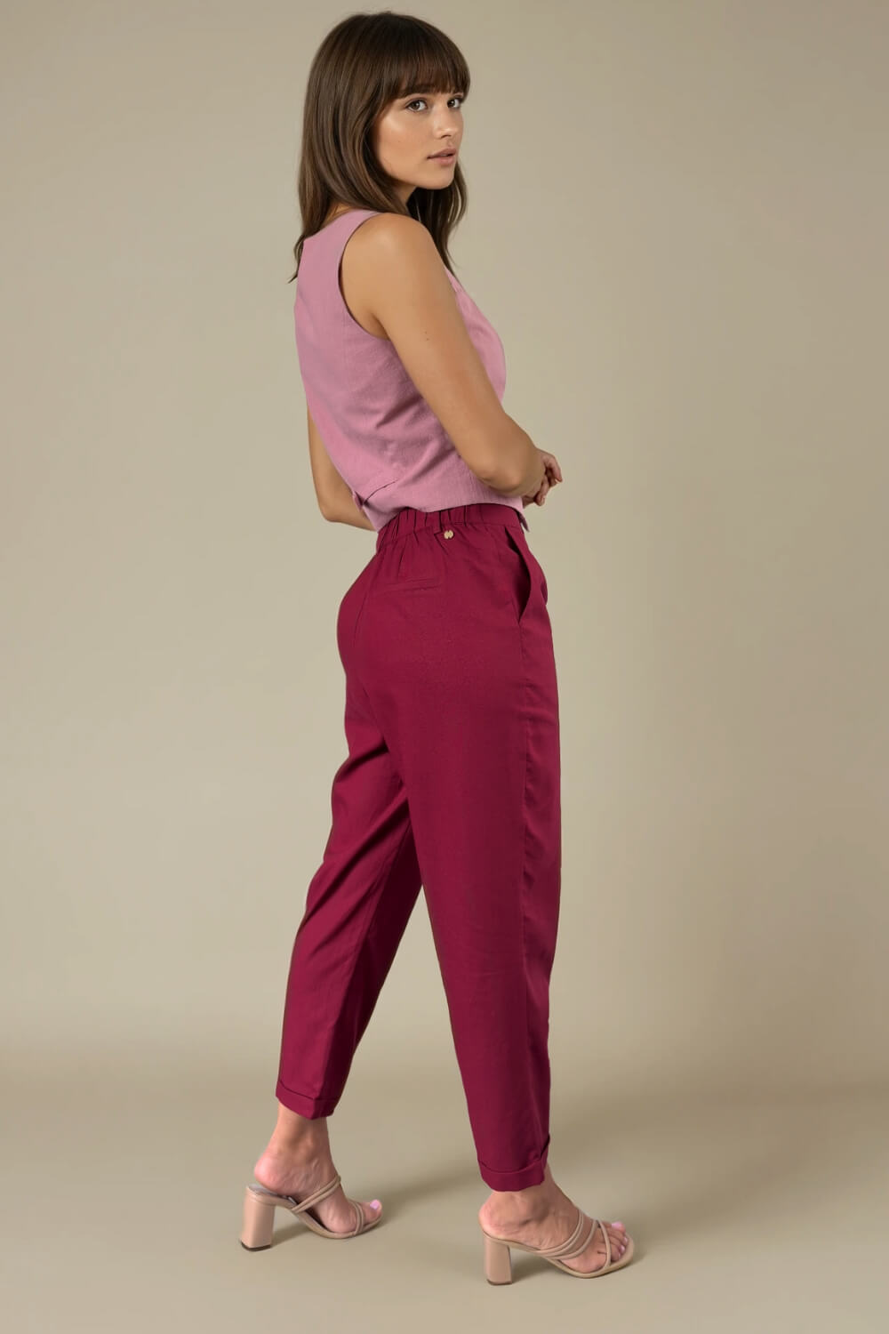 Pantalón Piano Lino Borgoña