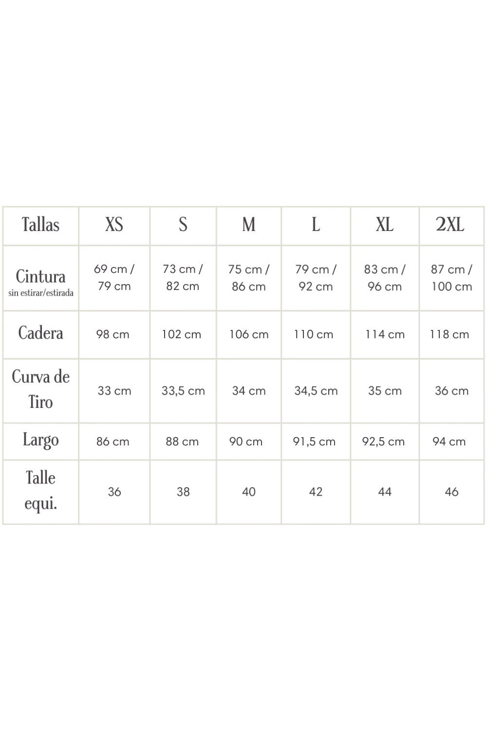 Elegimos nuestras prendas de calce suelto y relajado. Para te sientas cómoda al usarlas. De todas formas, si al momento de probarlas no te sientes 100% convencida con el talle puedes cambiarla o simplemente devolverla. Puedes ver nuestras políticas de cambio y devoluciones aquí.