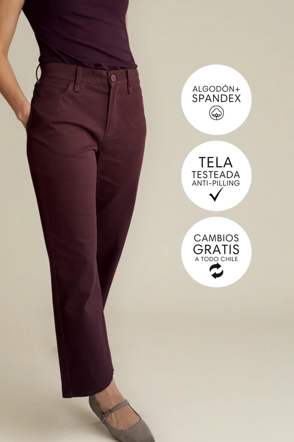 Confeccionado en algodón con spandex, tiene la combinación perfecta entre estructura y comodidad. El algodón le da un acabado firme y prolijo, mientras que el spandex aporta esa elasticidad justa que permite moverte con libertad durante todo el día, sin que pierda su forma. Su corte recto estiliza la silueta y alarga visualmente las piernas, logrando un calce favorecedor y atemporal. Tiene pretina con presillas, cierre frontal y bolsillos funcionales en delantera y espalda. Es un diseño limpio y elegante, fácil de combinar tanto con blusas más formales como con sweaters o poleras para un look más relajado.