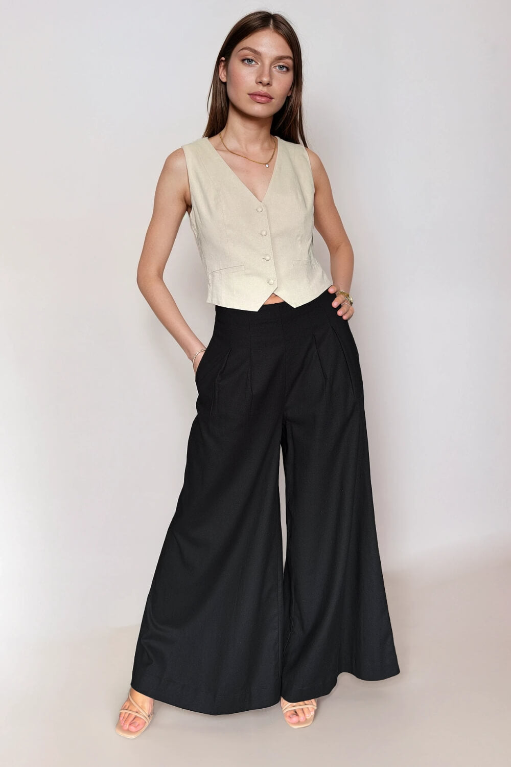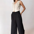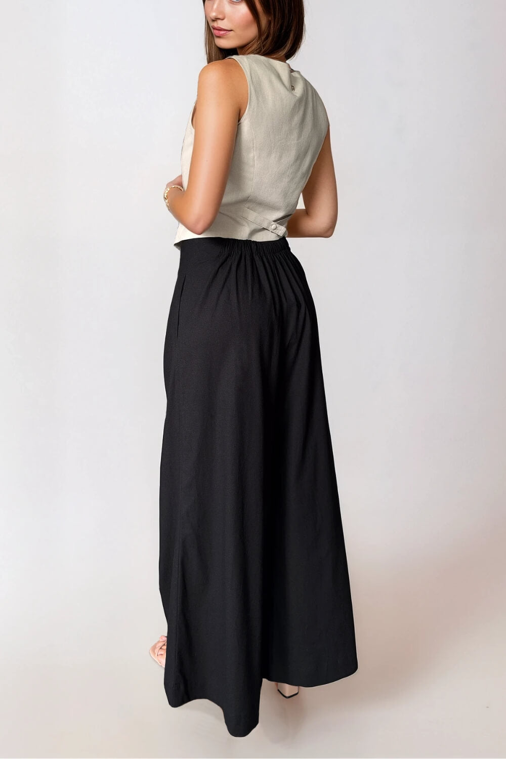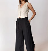 Perfecto para crear looks relajados pero con estilo, ya sea con una blusa liviana o un top más ajustado. Disponible en negro y verde seco, dos tonos versátiles que te acompañarán en múltiples ocasiones, desde una salida casual hasta un look más pulido para la oficina.