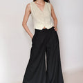 Material: 55% Viscosa, 45% Lino  - Una tela delgada sin elasticidad, muy fresca, liviana y agradable al tacto. Ideal para prendas de verano clásicas de estilo sastreras.