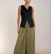 Material: 55% Viscosa, 45% Lino - Una tela delgada sin elasticidad, muy fresca, liviana y agradable al tacto. Ideal para prendas de verano clásicas de estilo sastreras.