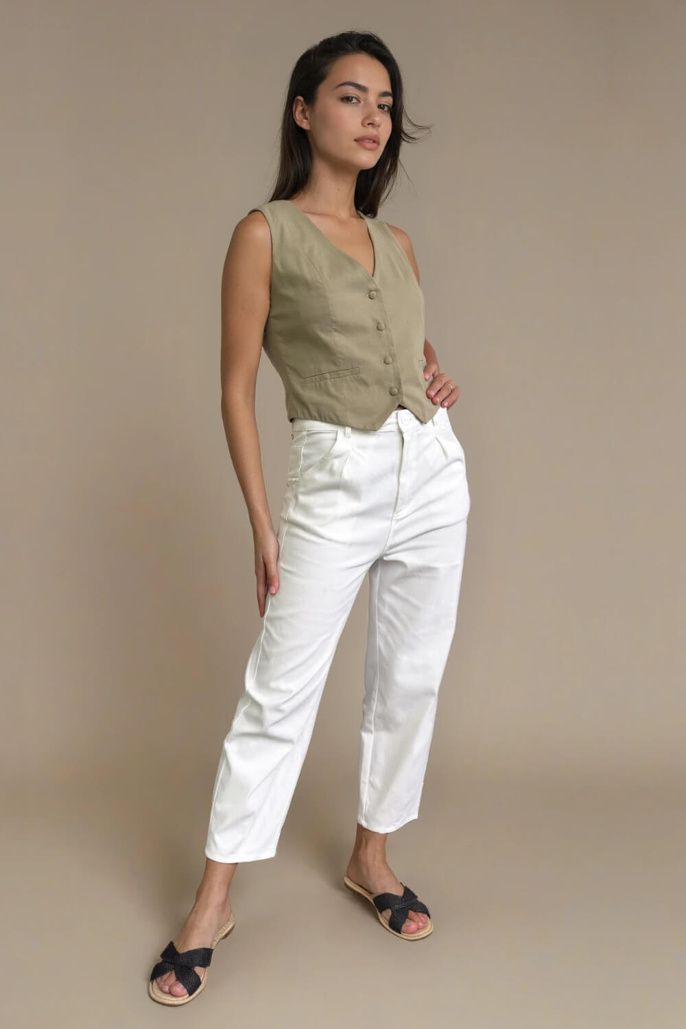 Material: Gabardina - 97% Algodón - 3% Spandex. Una tela de fibras naturales, de elasticidad leve y grosor medio, ideal para pantalones para todo el año.