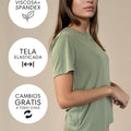 Material: 92% Viscosa, 8% Elastano. Un material suave, fresco y ligero, es ideal para prendas básicas para las temporadas más cálidas. Al tener un gran porcentaje de elastano, es una tela de alta elasticidad que cede varios centímetros.