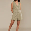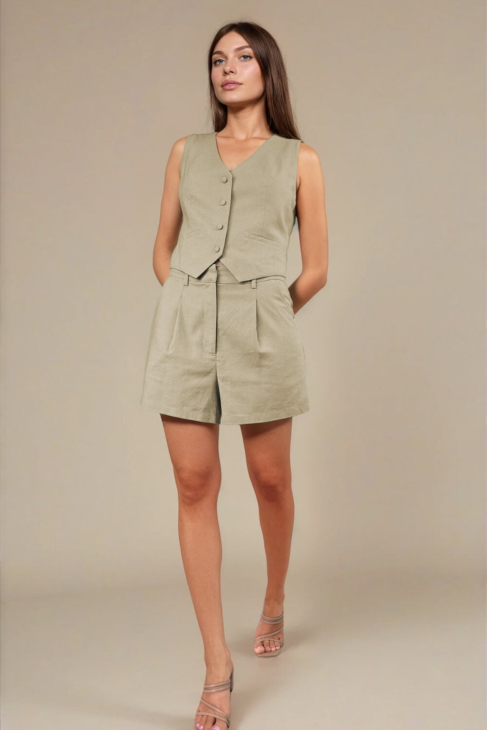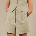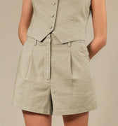 Refresca tu clóset con este short sastrero, confeccionado en una mezcla de lino y viscosa que aporta ligereza, frescura y un calce elegante con caída natural. Su diseño de inspiración clásica incluye tiro medio-alto, pretina con pasadores para cinturón, bolsillos laterales funcionales y delicadas pinzas delanteras que estilizan la silueta. El corte recto y ligeramente holgado entrega comodidad sin perder la estructura, convirtiéndolo en una prenda versátil para armar looks tanto casuales como más formales. Disponible en dos tonos atemporales y fáciles de combinar: verde seco y azul clásico. Además, lo puedes llevar como parte de un conjunto sastrero con nuestro top gillette jazz de lino, logrando un look moderno, femenino y lleno de estilo.